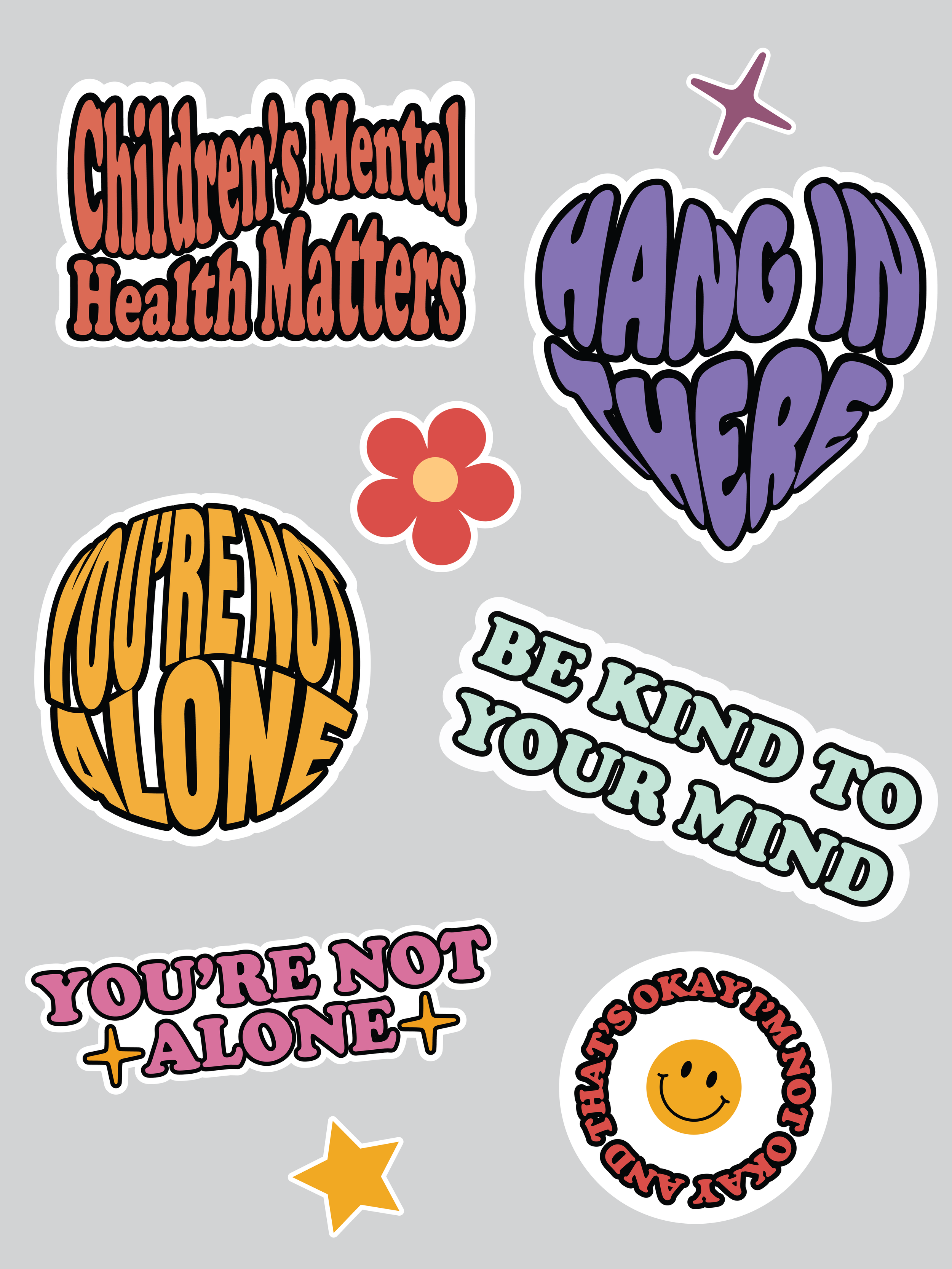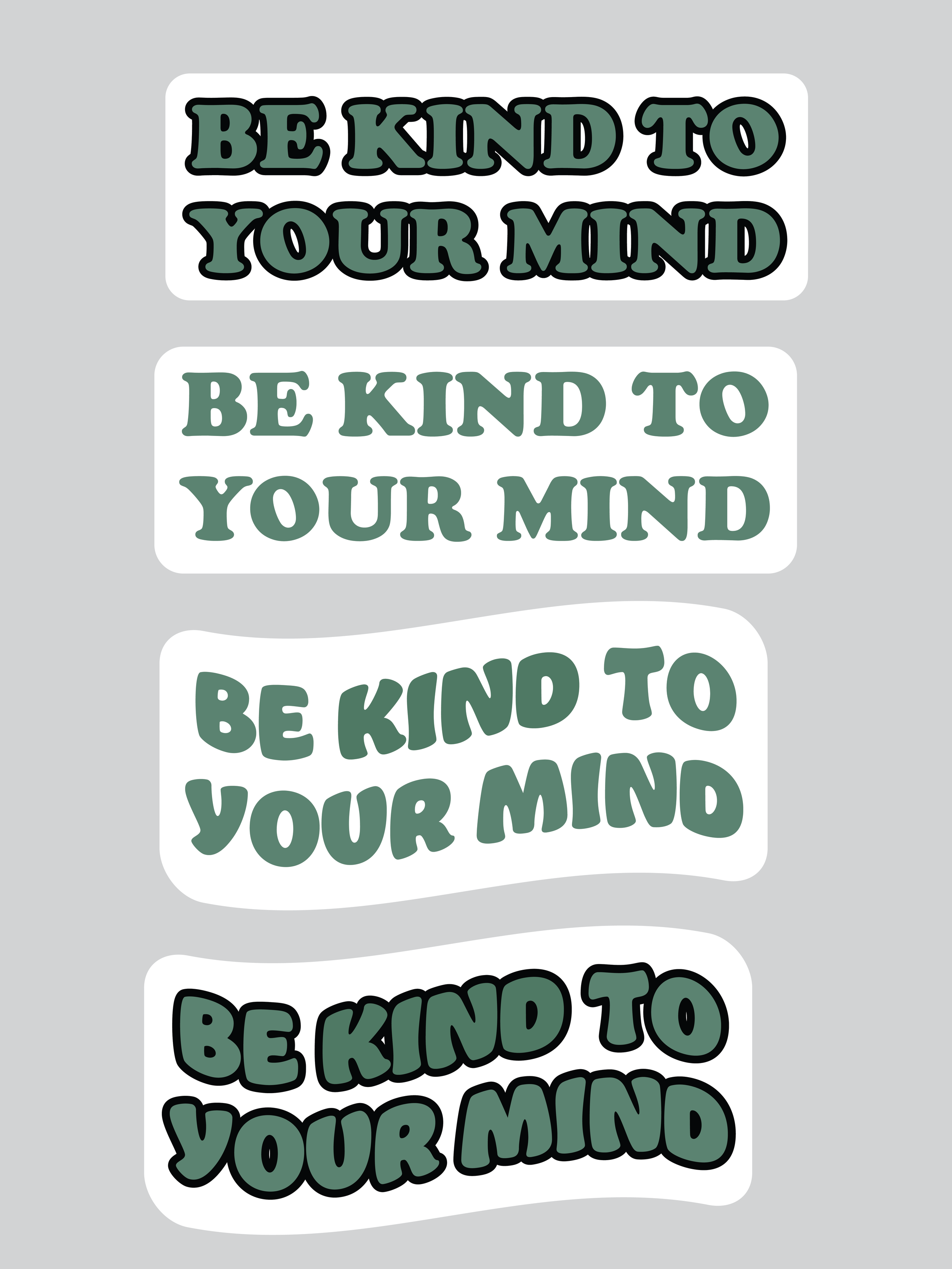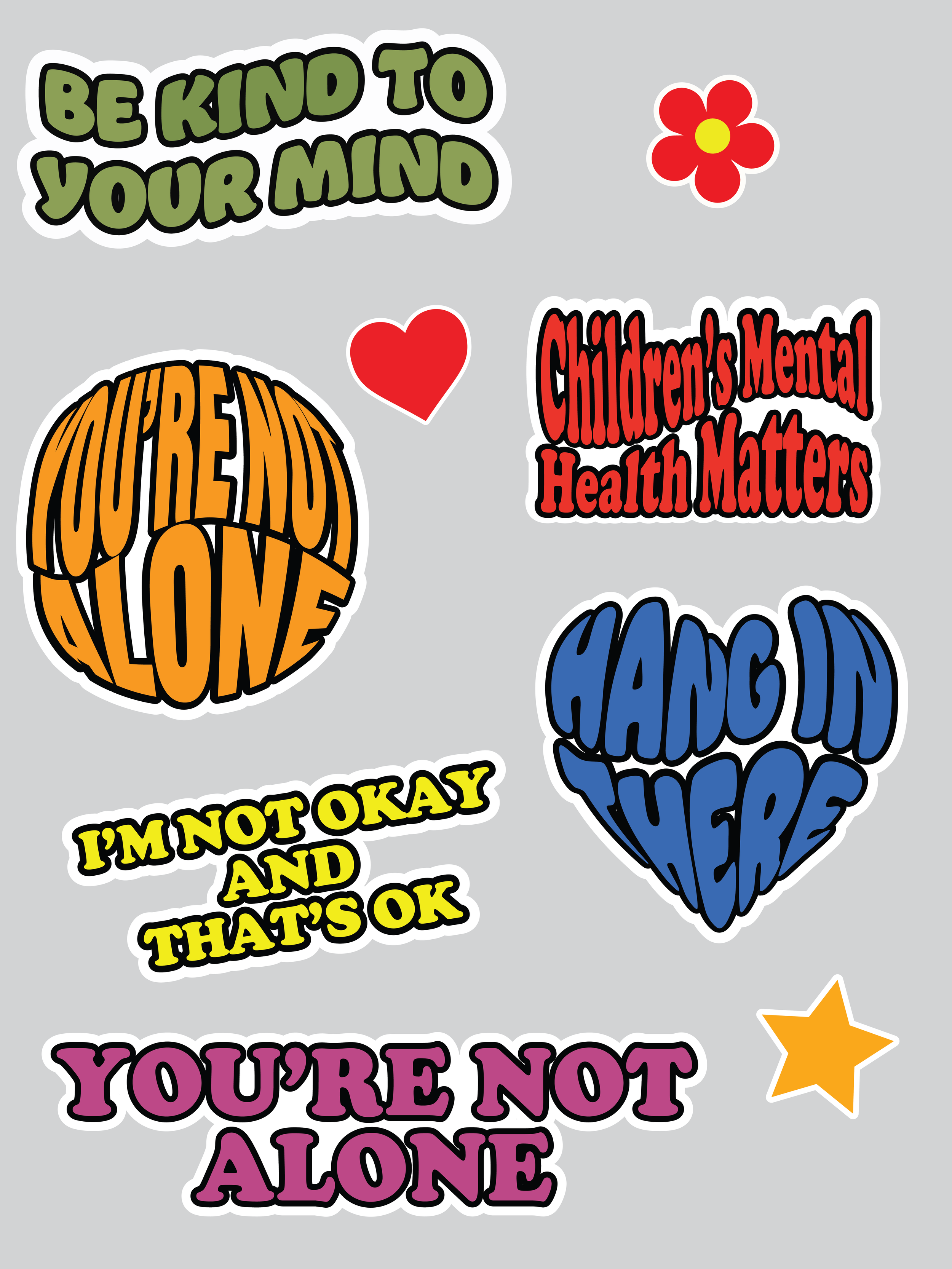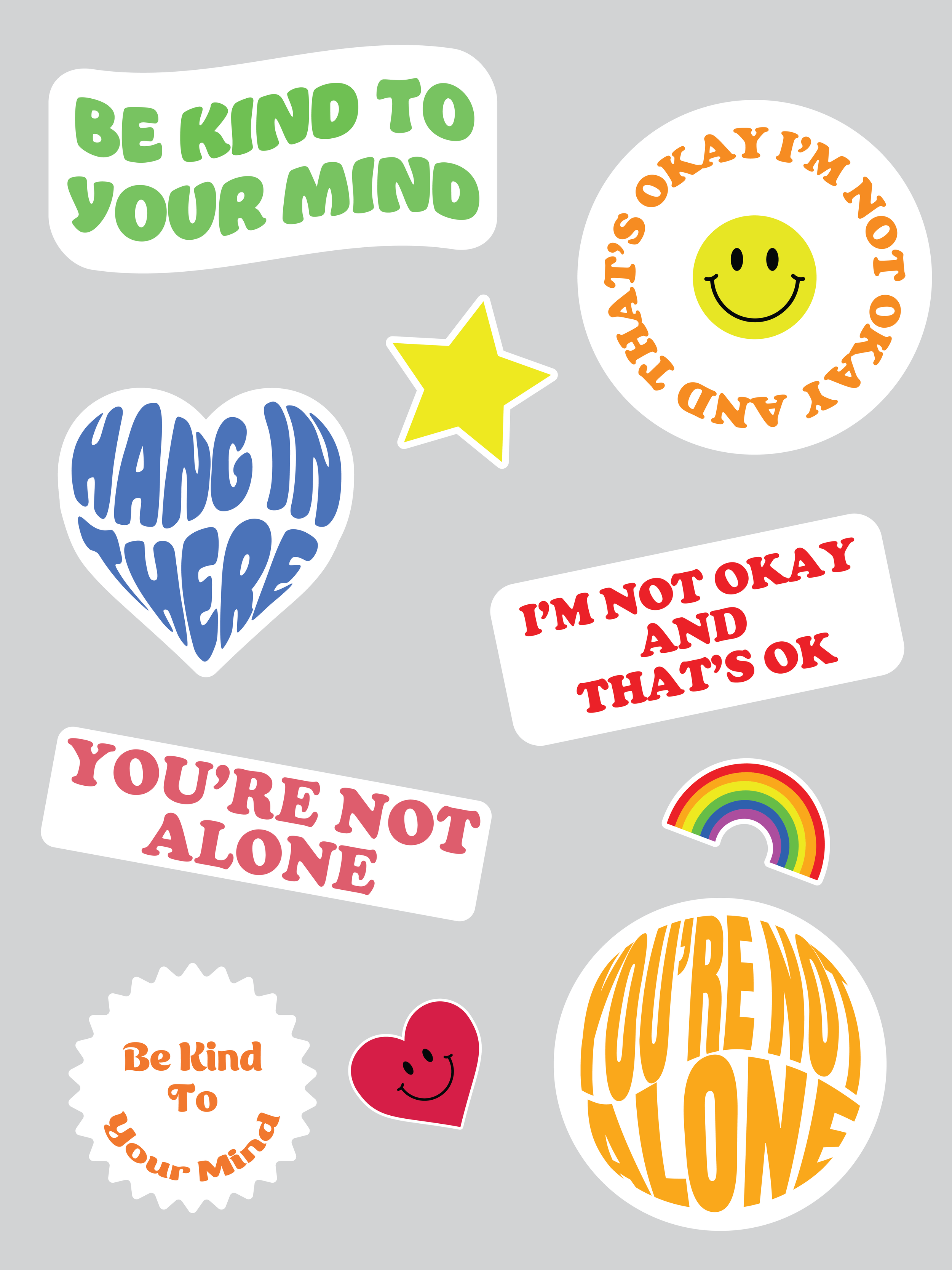 As a kid, I loved stickers, like many do, so I wanted to create typographic stickers with positive messages, such as “Be kind to your mind” and “You are not alone.” The stickers bring awareness that kids, like adults, suffer from mental illnesses and tell kids that they aren't the only ones going through these emotions and that they shouldn't be hard on themselves as well.